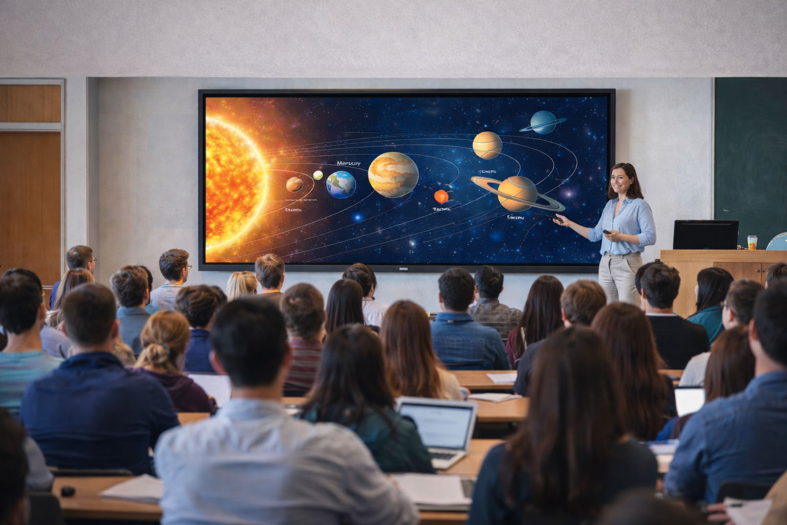 Kích thước cần tương xứng với diện tích phòng và số lượng học sinh. Lớp học 20–30 người thường phù hợp với màn hình 65–75 inch. Với hội trường hoặc lớp đông, kích thước lớn hơn sẽ đảm bảo mọi vị trí đều quan sát rõ.