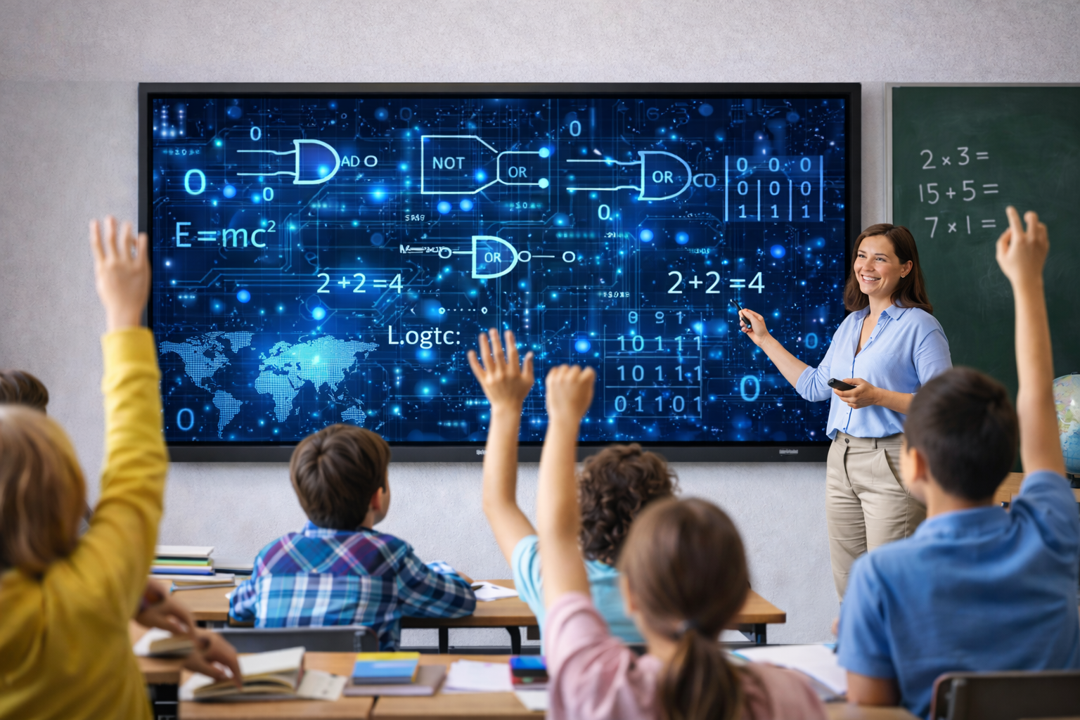 Độ phân giải Full HD hoặc 4K giúp nội dung hiển thị rõ chữ, rõ hình. Góc nhìn rộng đảm bảo học sinh ngồi lệch vẫn thấy nội dung không bị biến màu hay tối hình.